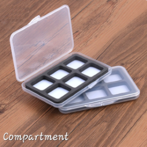 Small comp slim line fly box - Transparent high density durable plastic. Side clip locking. 6 sectioned compartments. 115/77/10mm