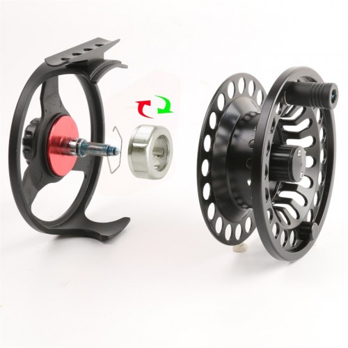 One-way bearing for easy left-to-right hand conversion.