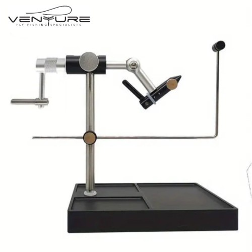 The Venture 'R-Actuator' Fly Tying Vice is a must have addition for your fly tying station. Featuring a strong and stable design weighting in at an impressive 1,16kgs. This vice is a dependable, durable and fully adjustable workhorse that will faithfully fulfill all of your fly tying needs for years to come. Finished in an anodized silver and black colour the Venture R-Actuator Vice is the choice for beginners and seasoned fly tiers, giving you and your bobbin the room to work your magic.