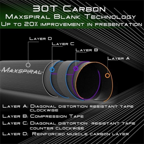 Made from pure IM8 30T carbon fiber, mixed with 5 layers of carbon including a horizontally reinforced UGG carbon layer, resulting in a 20% improvement in presentation and strength.