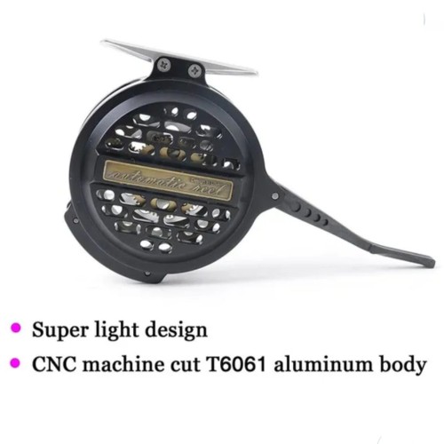 The V-Matic reel is an automatic reel and was developed with the Euro style nymphing flyfishermen in mind. It is fully machined from aluminium, full cage reel with aluminium and brass internal components and with a smooth teflon drag system. A large arbor reel which helps for less line memory and a quick line retrieval.